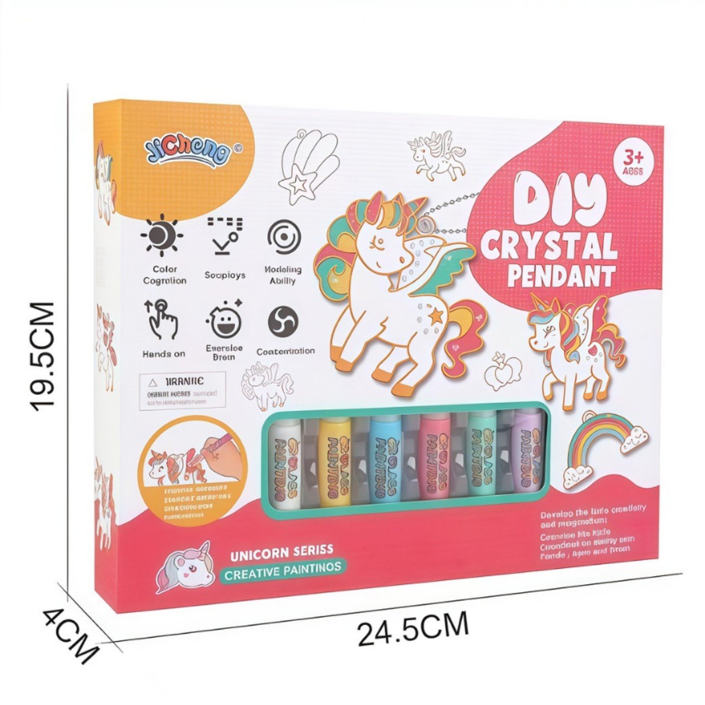 📦Package Includes: Crystal pendants*6 + Colorful paint*6 + Chain*6 + Tweezers*1 + 1 Pack of diamonds + 1 Pack of colorful beads + String*1
